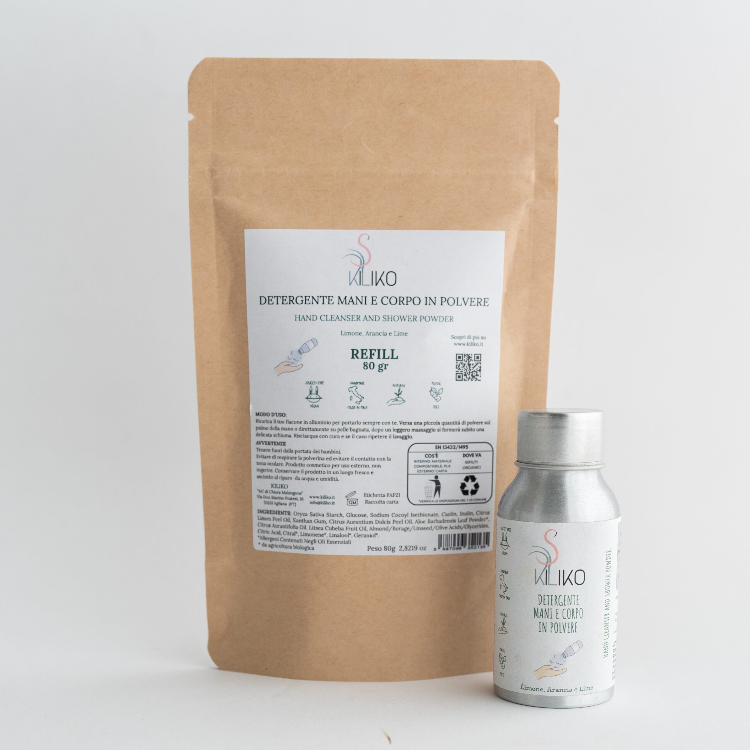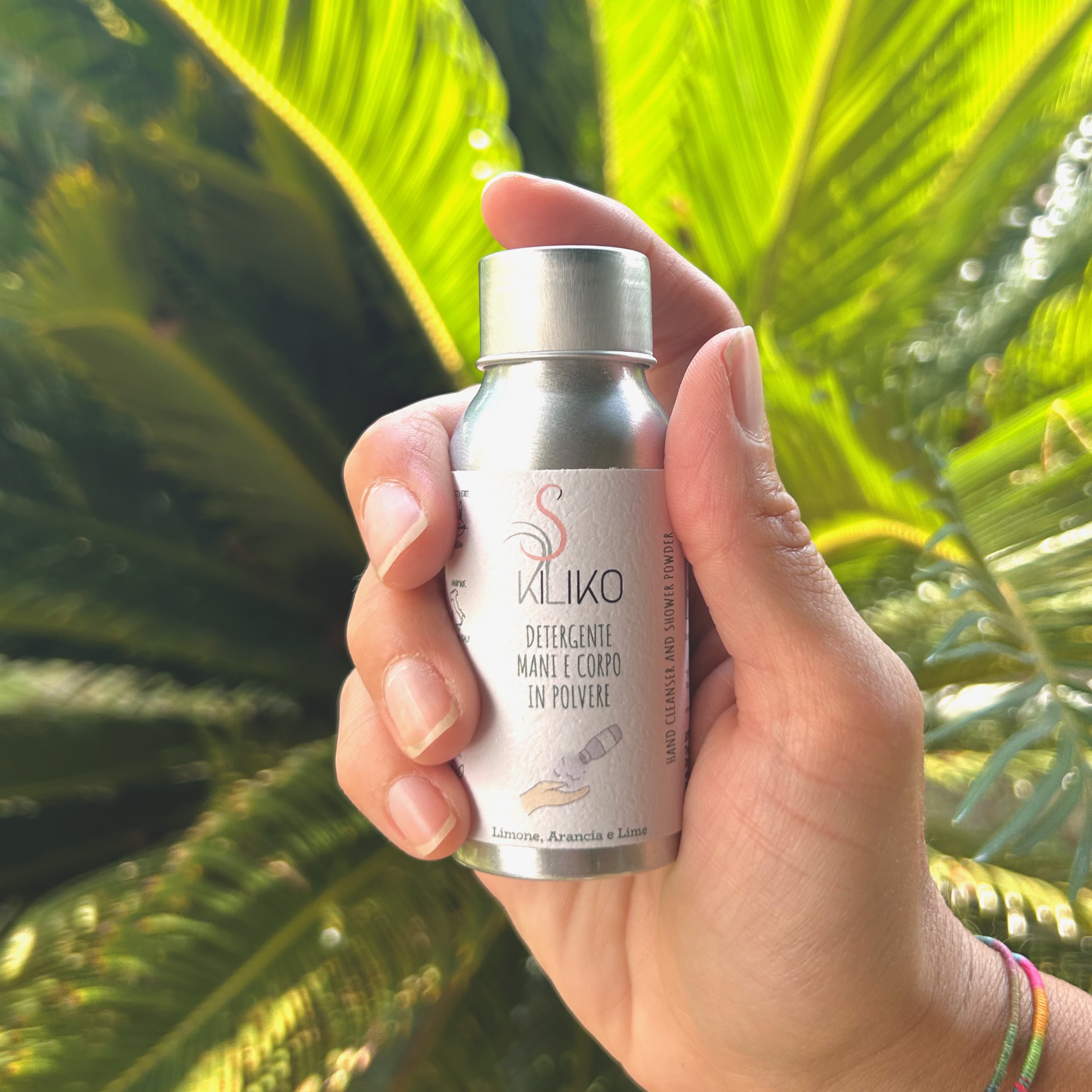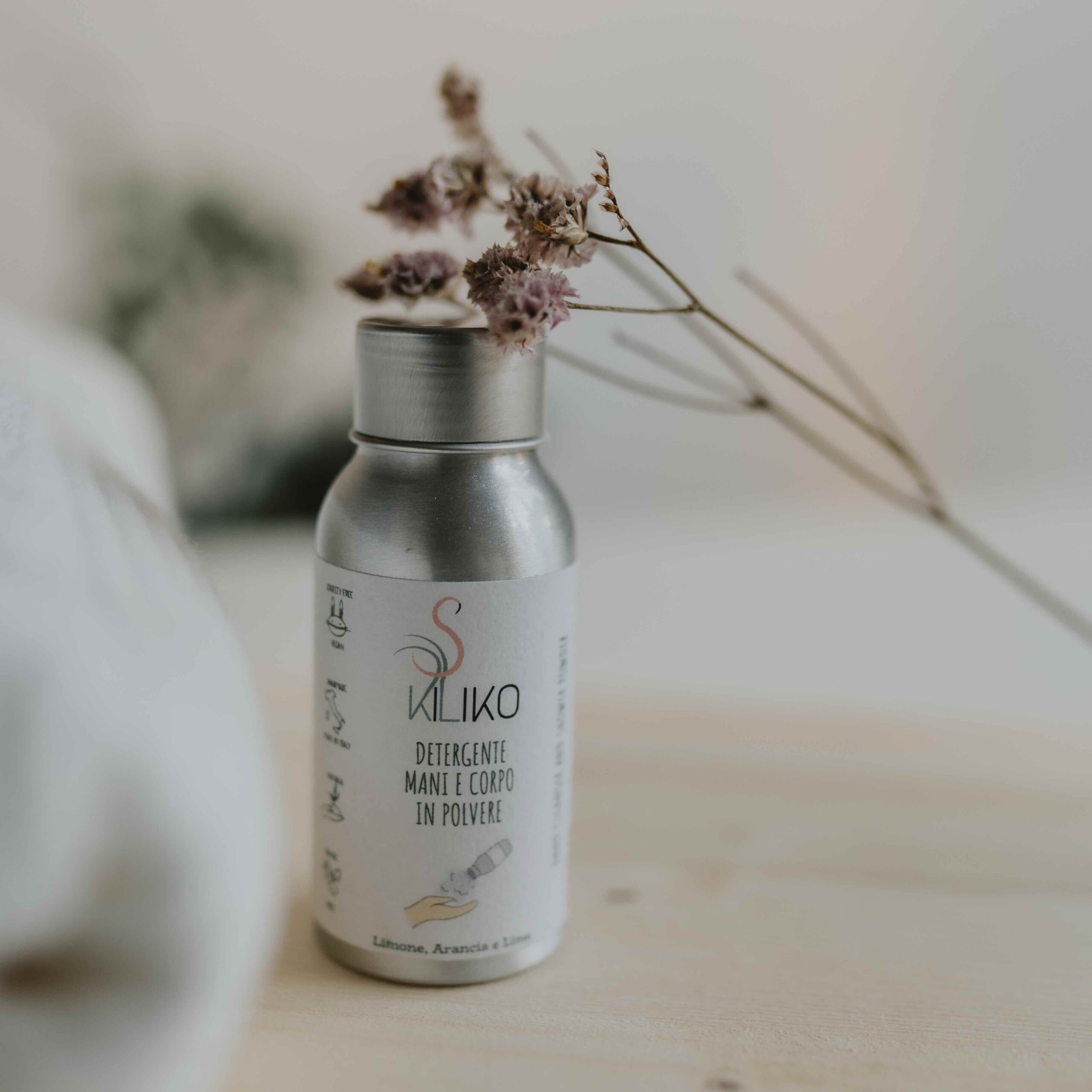 Questo detergente mani e corpo in polvere a contatto con l’acqua si trasforma in una delicata schiuma lavante adatta a tutte le pelli.