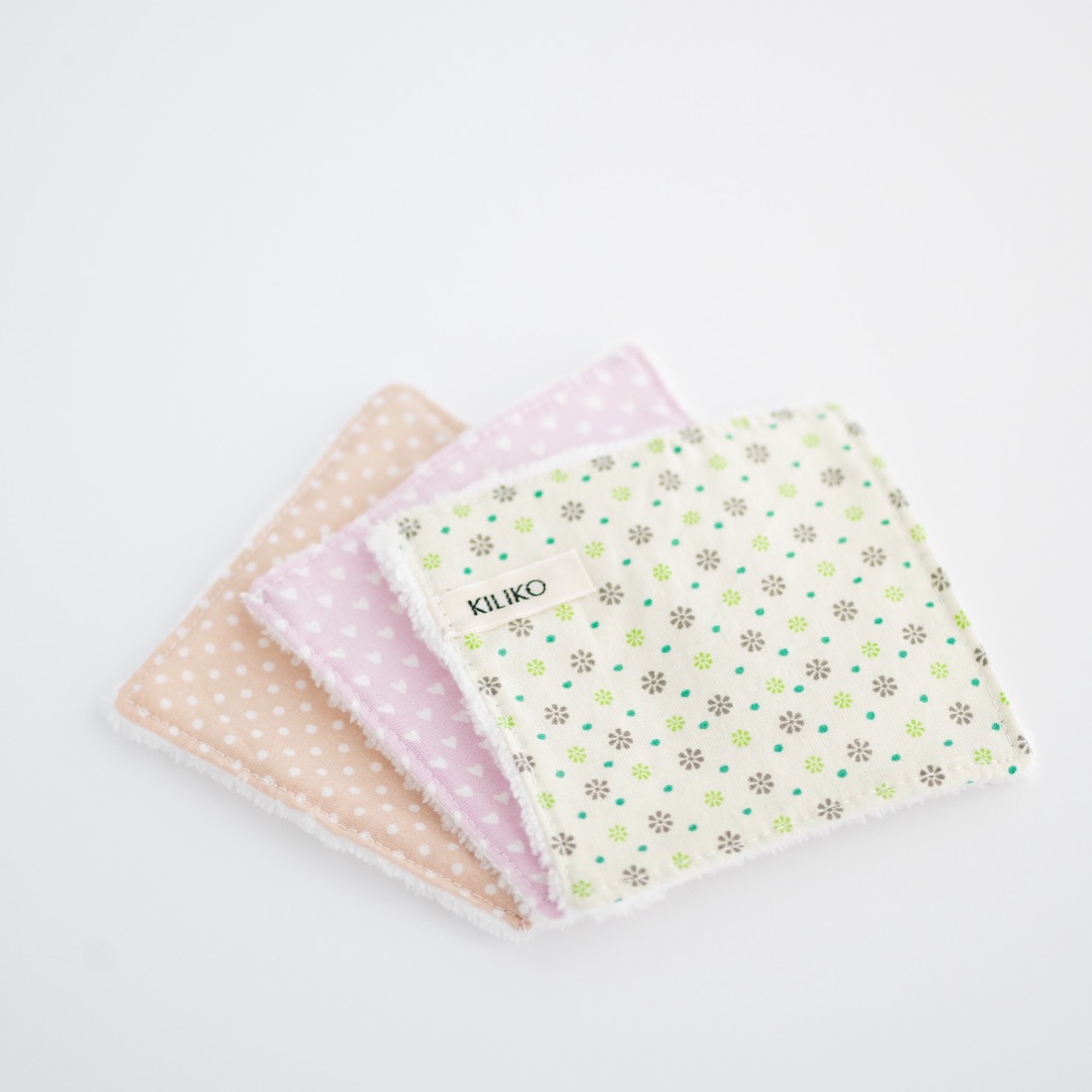 I dischetti lavabili sono cuciti a mano uno ad uno in modo artigianale in Italia con molta cura ai dettagli e alla scelta dei tessuti.