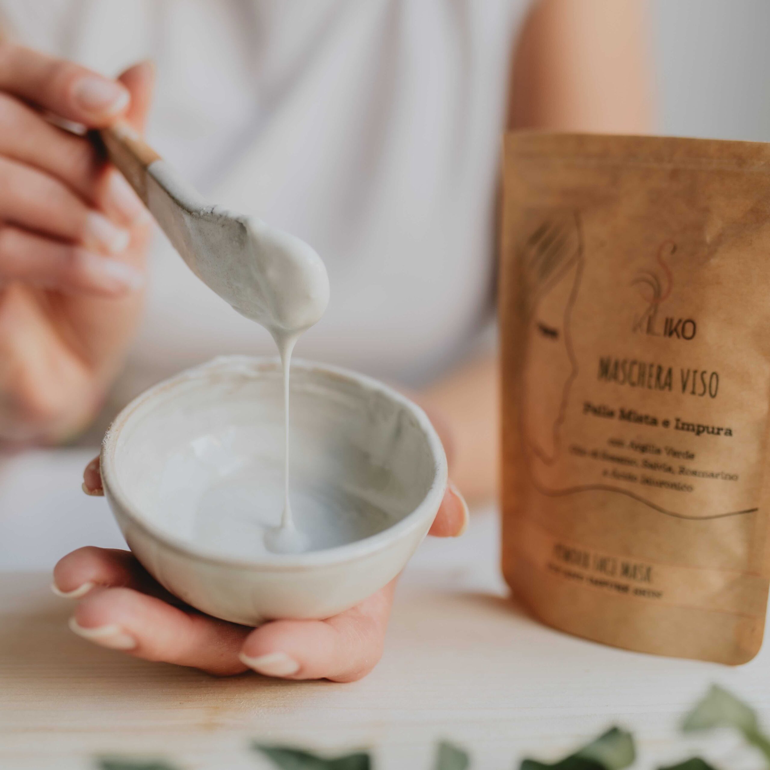 Per mescolare la maschera, evita strumenti in metallo, poiché potrebbero alterarne le proprietà purificanti. Usa invece un cucchiaio e una ciotola in legno, ceramica, vetro o plastica.