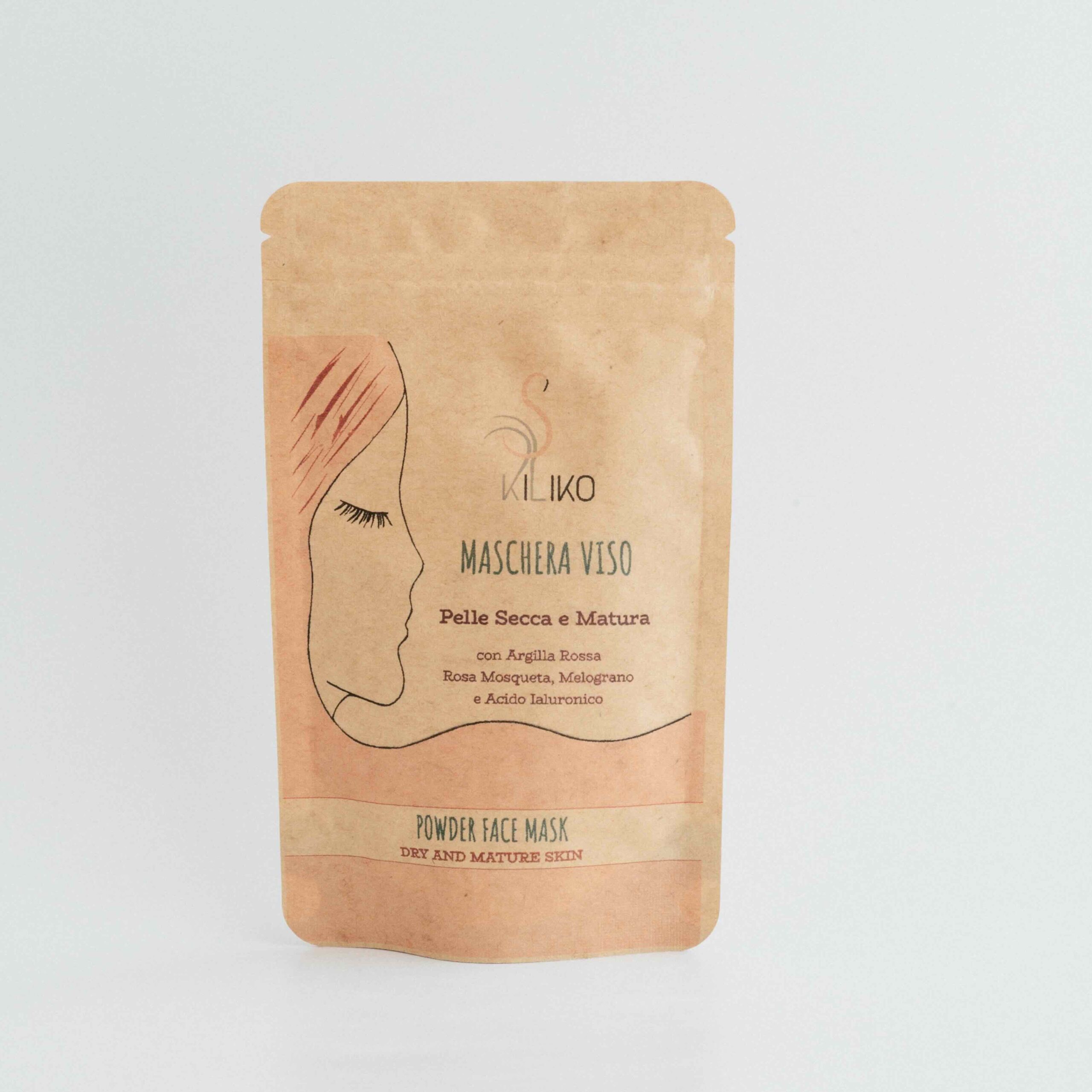 MASCHERA VISO IN POLVERE Pelle Secca e Matura con Argilla Rossa, Melograno, Rosa Mosqueta e Acido Ialuronico